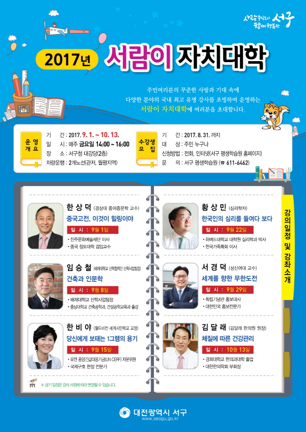 재미와 감동, 행복한 평생학습의 장인 ‘2017년 하반기 서람이 자치대학’에 구민 여러분을 초대합니다!