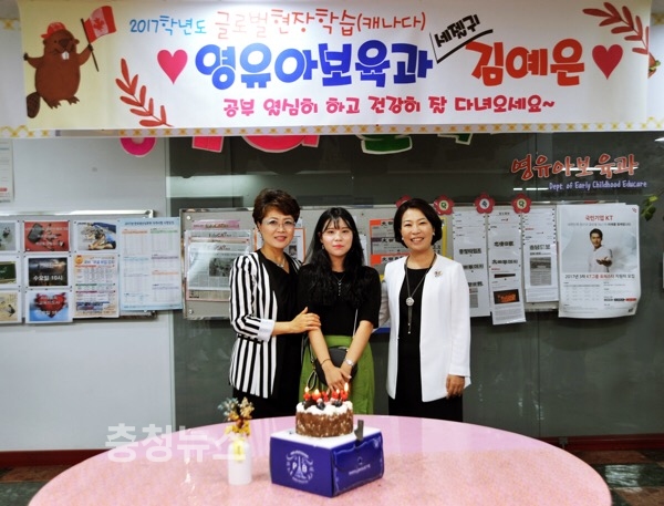 대덕대학교(총장 김상인) 영유아보육과는 28일 오후 2시 정곡관 3층 학과 로비에서 2017학년도 글로벌현장학습 과정에 선발돼 오는 29일 캐나다로 떠나는 김예은 학생(2학년, 21)을 위해 축하 환송회를 가졌다.
