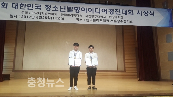 지난 25일 ‘제16회 대한민국 청소년발명경진대회’ 시상식에서 한국폴리텍대학 대전캠퍼스에서 박세용, 김호중 군이 각각 한국폴리텍대학 이사장상(금상), 대한변리사회장상(동상)을 수상했다.