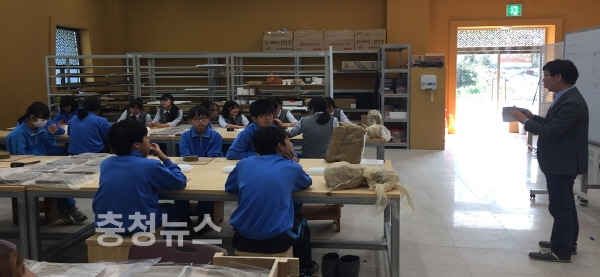 중학교 자유학기제 프로그램 백제와박사 체험 실시 장면