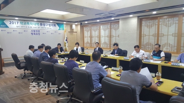 대전 유성구(구청장 허태정)는 29일 중회의실에서 대전서부교육지원청, 유성경찰서, 각 학교와 민간단체가 참여하는 학교폭력대책 유성구협의회를 개최했다고 밝혔다.