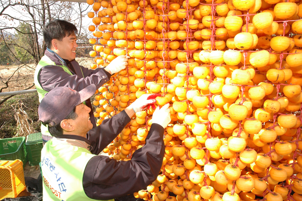 충청체신청(청장 이계순)에서는 2007. 10. 30.(화) 직원 30여명이 일손이 부족한 논산시 양촌면 상리마을을 방문해 곶감 만들기를 도왔다.