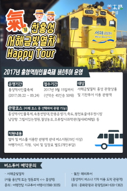 버스투어 신청 대상은 서해금빛열차 홍성 관광 상품 및 ‘氣찬투어’ 이용 관광객, 홍성 방문객 등이며 관광코스는 축제와 연계하여 자유롭게 편성하면 된다.