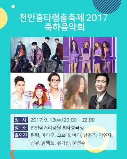 천안문화재단은 천안흥타령춤축제2017의 서막을 장식하고 축제분위기를 고조시킬 축하음악회의 계획과 출연진을 확정했다고 밝혔다.