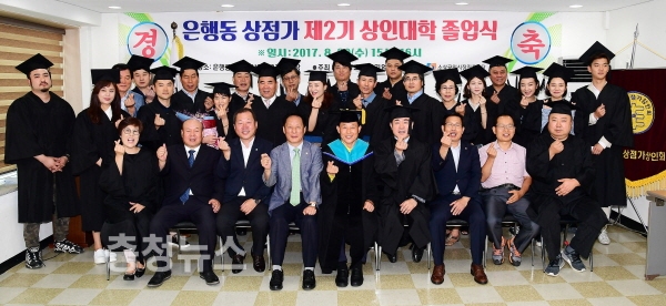 이 날 30명의 상인대학 학생과 박용갑 청장, 이병희 소상공인시장진흥공단 대전충청지역본부장, 하재붕 중구의회 의장, 구범림 대전시 상인연합회 회장 등 지역관계자들이 참석해 졸업을 축하했다.
