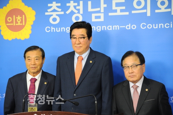 윤석우 충남도의회 의장을 비롯한 신재원 부의장, 서형달 예산결산특별위원장 등은 4일 도의회 브리핑실에서 기자회견을 열고 “제10대 도의회에서는 시군 행정사무감사를 시행하지 않겠다”고 입장을 표명했다