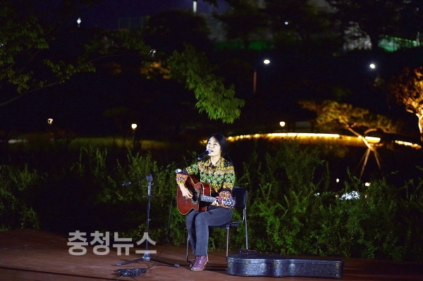 충남 논산시민공원에서 열리는 숲속버스킹이 성큼 다가온 논산의 가을을 촉촉이 적시고 있다.
