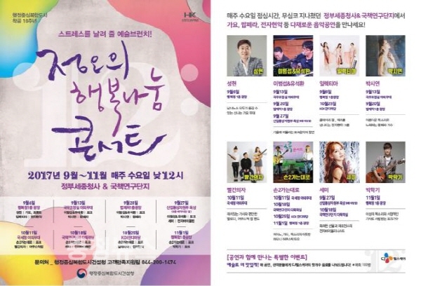 정부세종청사 등에서 이전 공무원과 연구원, 행정중심복합도시 입주민을 위한 ‘청사 순회 정오의 행복 나눔 콘서트’가 펼쳐진다.