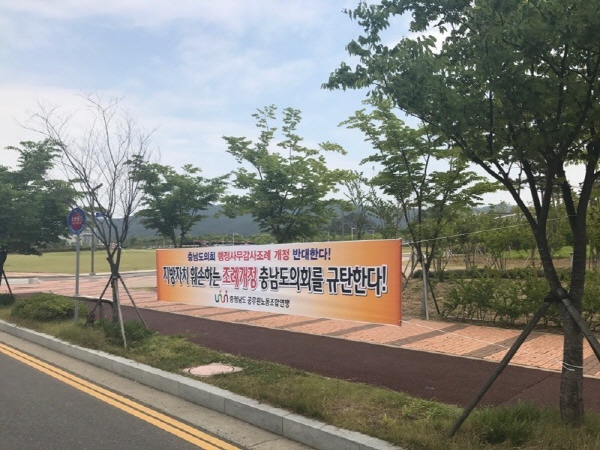 충남연맹에 따르면 지난 6월 공무원노조와 시군의회의장협의회에서 새정부의 지방분권 강화기조에 역행하는 충남도의회의 시군 행정사무감사를 위한 道행감조례 개정 유보를 요구할 때 묵살하지 말고 유보했어야 했다는 것이다.