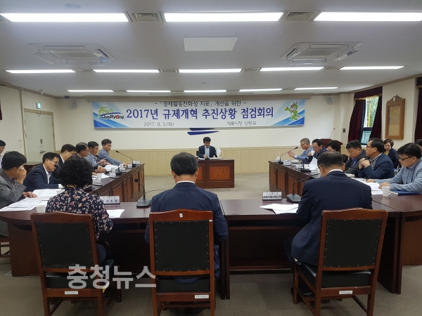 충남 계룡시(시장 최홍묵)는 지난  5일 시청 상황실에서 안일선 부시장 주재로 ‘2017년 규제개혁 추진상황 점검회의’를 개최했다.