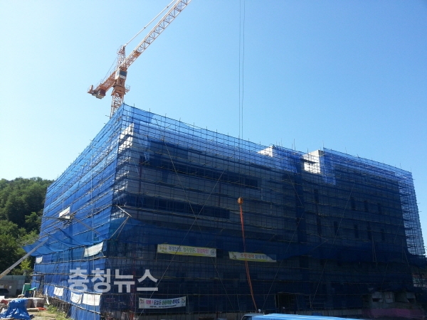 2018년 1월 개관 예정으로 현재 73%의 공정률을 보이고 있는 아산 중앙도서관 공사 모습