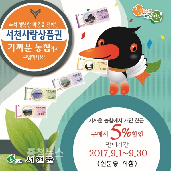 서천군, 서천사랑상품권 추석 명절 할인 판매