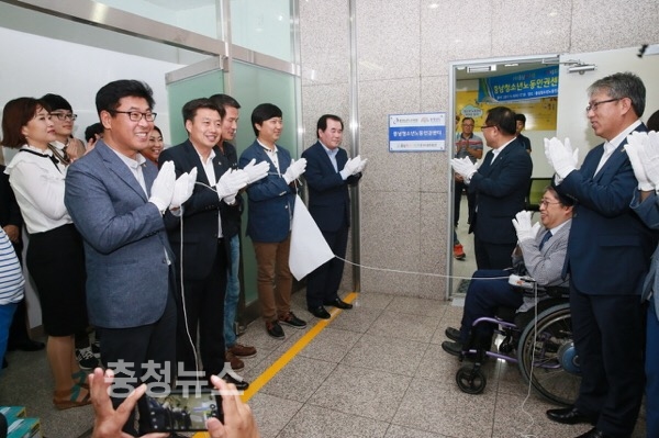 충남도교육청(교육감 김지철)과 충남도(도지사 안희정)가 공동 설치한 청소년노동인권보호 전담기구 ‘충남청소년노동인권센터’가 6일 오후 개소식을 가졌다.