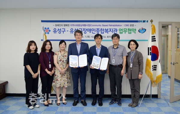 대전 유성구(구청장 허태정)는 장애인이 건강한 행복을 나누는 지역사회중심재활사업 조성을 위해 장애인복지 전문기관으로 활동하는 ‘유성구장애인종합복지관’ 과 7일 업무협약을 체결했다고 밝혔다.