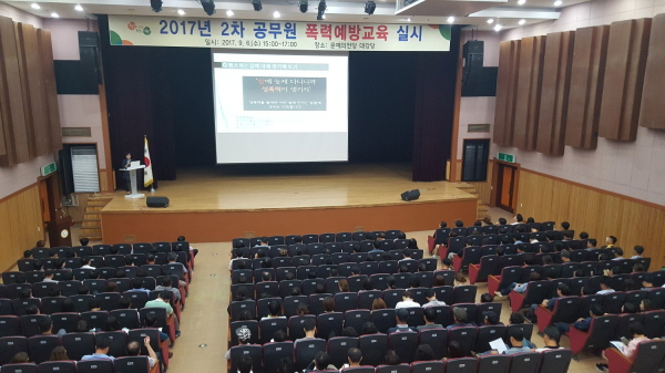 서천군(군수 노박래)은 지난 6일 문예의전당 대강당에서 공무원 430여 명을 대상으로 ‘공무원 2017년 2차 폭력 예방교육’을 실시했다.