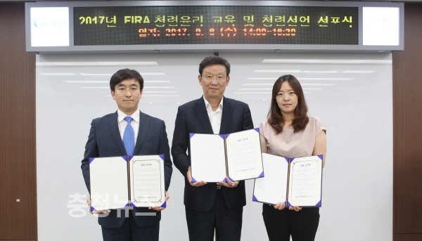 한국수산자원관리공단(FIRA, 이사장 정영훈)은 지난 6일 공단 한바다홀에서 정 이사장을 비롯한 전 직원이 참석한 가운데 청렴윤리 교육을 실시하고“청렴 선언 선포식”을 가졌다.