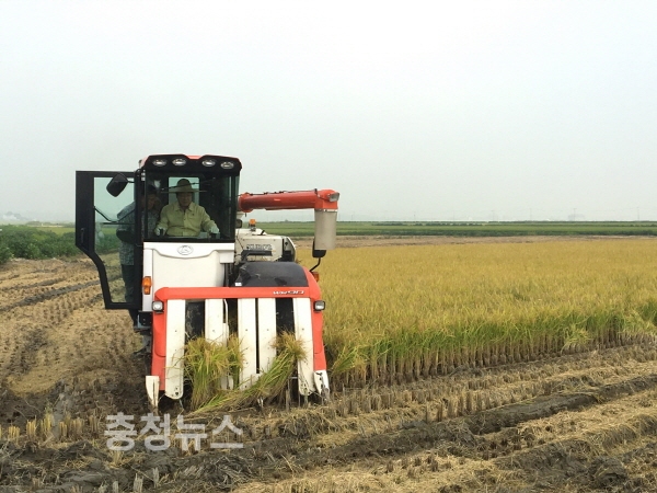 신평면 일대 밥맛 좋은 조생종 해담벼 수확 시작