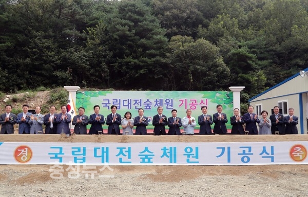 기공식에는 권선택 대전시장, 김재현 산림청장, 윤영균 한국산림복지진흥원장, 조승래 국회의원, 허태정 유성구청장, 조원희 대전시의회 부의장, 송대윤 대전시의원, 정인수 대한전문건설협회 대전회장 등 내외빈 300여 명이 참석했다.