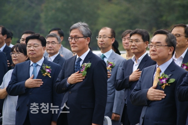 권선택 시장, 김재현 산림청장, 윤영균 원장 국기에 대한 경례