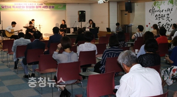 충남 당진시립중앙도서관이 지난 8일 개관 8주년을 기념해 독서문화 활성화 방안을 모색하기 위한 정책포럼을 중앙도서관 영상강의실에서 개최했다.