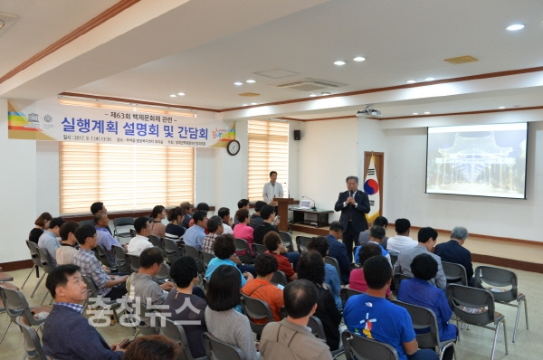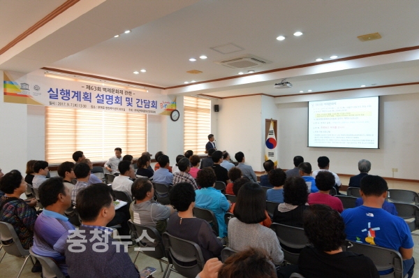 충남 부여군백제문화선양위원회(위원장 이용우)는 지난 7일 부여읍 행정복지센터 회의실에서 각 읍면 이장단회장, 새마을회장, 관계공무원 등 70여명이 참석한 가운데 제63회 백제문화제의 성공적인 개최를 위한 현장감 있는 주민설명회를 가졌다.