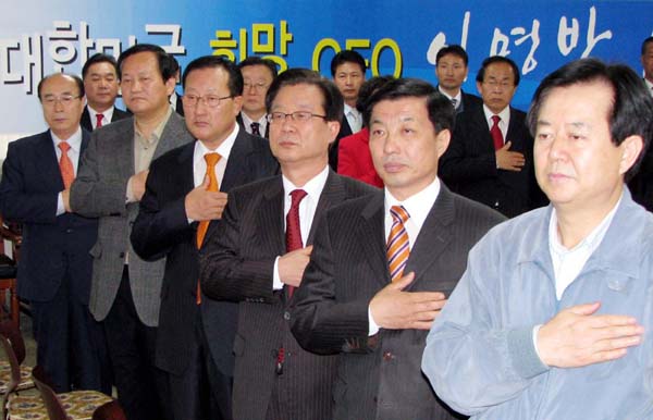 그는 한나라당은 동창회가 아니라 국민의 여망을 받들어 정치적 승리를 위해 모인 결사체인 만큼 용감하게 싸워서 반드시 승리를 쟁취하자"고 역설했다.