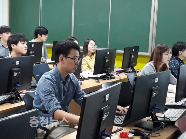 세종시교육청은 중등 수학교사 45명을 대상으로 「2017년 스마트교육 기반 지오지브라 활용 수학교사 직무연수」를 실시했다. 사진은 9일(토), 세종과학예술영재학교에서 진행 중인 연수 장면