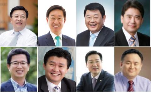 왼쪽 위부터 시계방향, 권선택 대전시장-박범계 국회의원-박성효 전 대전시장-육동일 교수-이상민 국회의원-이장우 국회의원-정용기 국회의원-허태정 유성구청장(가나다 순)