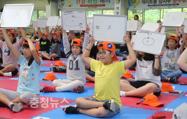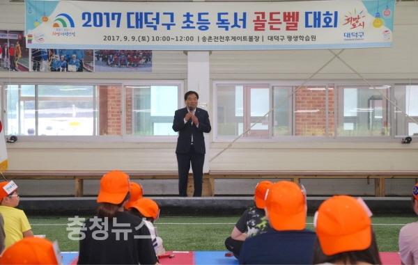 이날 오전 10시에 송촌전천후게이트볼장 실내 잔디밭에서 대덕구에 있는 17개 초등학교 어린이 100여명이 참가한 가운데 ‘초등독서골든벨대회’가 열렸다. 사전에 미리 공지된 선정도서 5권을 읽고 나서 책 속 내용을 중심으로 ○ × 문제와 단답형 문제를 푸는 방식으로 진행됐다. 마지막까지 살아남아 대상의 명예를 거머쥔 학생은 송촌초등학교 5학년 석지홍이다.