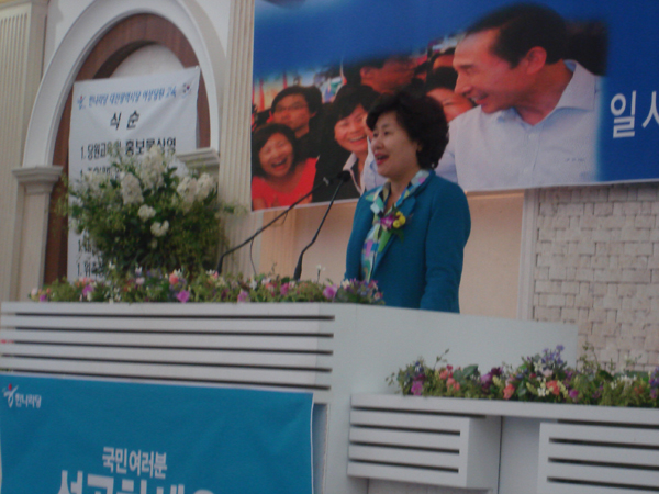한나라당 이명박 후보 부인 김윤옥 여사가 12일오후 대전을 방문해 여성당원들의 女心잡기에 올인했다.
