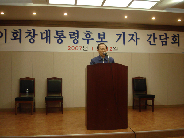 이 후보는 12일 오후 대전기독교 봉사회관에서 열린 뉴라이트 초청행사에 참석해 대선출마 문제를 두고 고심이 많았다고 심경을 토로했다.