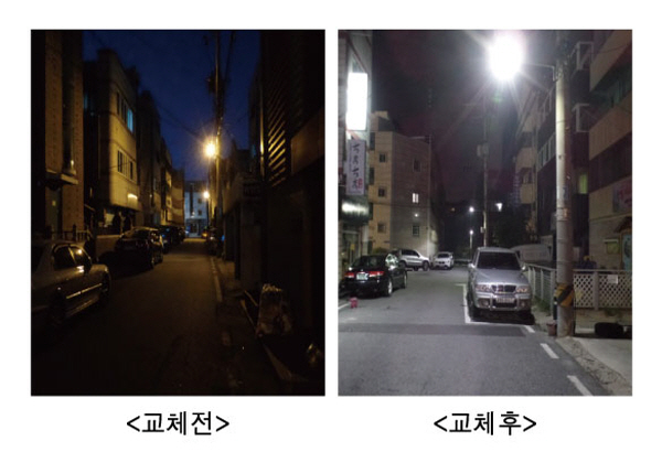 노후 보안등을 셉테드 공법을 적용한 LED보안등으로 전면 교체했다