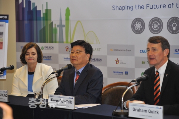 권선택 대전시장은 이날 기자회견에서 "93년 대전엑스포 이후 23년만에 크게 국제행사 치르는데 아직까지 큰 문제없이 진행되고 있다"며, "이번 아태도시정상회의를 통해 글로벌 브랜드로서의 대전을 세계에 알리겠다"고 말했다.
