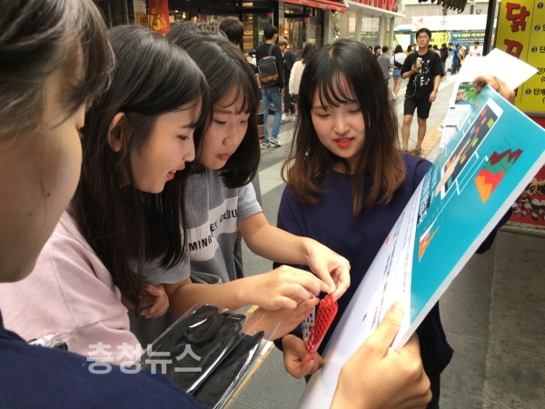 상명대 우리말 가꿈이 학생 20여명이 참가한 가운데 열린 이날 캠페인에서는 공공언어에 대한 충남도민의 인식을 조사했다.