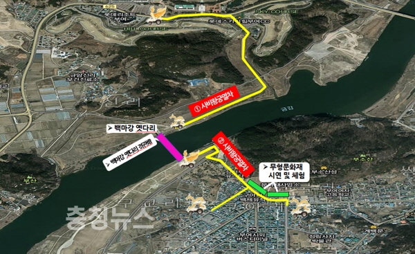 제2코스는 ‘백마강 옛다리’를 건너 구드래 둔치와 주 행사장인 미성삼거리를 잇는 1.2km 구간으로 운행된다.