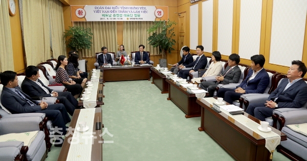김경훈 의장은 베트남 흥옌성 대표단과 환담을 나누면서 “베트남 흥옌성과 대전시가 우호도시 교류의향서를 체결하는 것으로 알고 있다”고 말하며 “앞으로 베트남 빈증성 못지않게 우호협력관계를 다져 자매도시로 발전해 나아갈 수 있기를 희망한다”고 말했다.