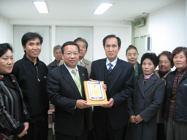 국민중심당 권선택 의원(대전중구)이 대사동 주민들의 숙원사업인 소방도로 개설을 위해 국비를 확보한 공로를 인정받아 14일 대사동 주민들로부터 감사패를 받았다.