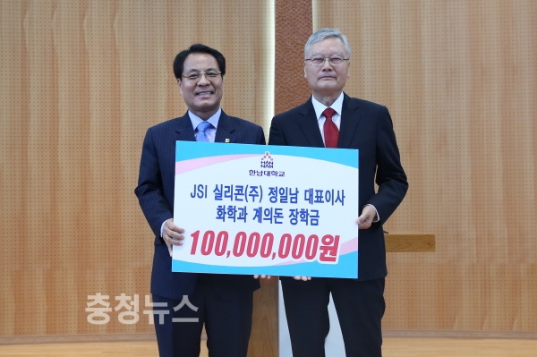 ㈜JSI실리콘 정일남 대표가 13일 한남대에 1억 원의 장학기금을 쾌척했다.