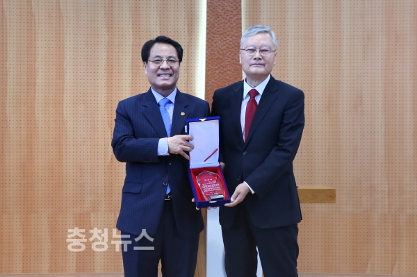 이덕훈 총장은 정 대표에게 감사패를 전달하고 "정 대표님의 따뜻한 마음에 감사를 드린다"며 "학생들을 위해 이 장학금을 소중하게 사용하겠다“고 밝혔다.