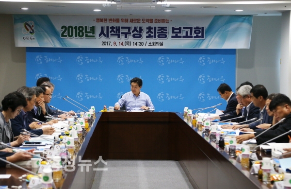 이날 각 부서에서 보고한 2018년 신규 시책사업은 총239건으로, 이중 148건은 정책자문위원회의 의견이 반영됐으며, 지난 8월 열린 청소년 정책콘서트에서 제안된 21건과 새 정부의 정책기조, 4차 산업혁명, 지속가능발전 등 새로운 패러다임에 대응한 사업들도 신규시책에 포함됐다.