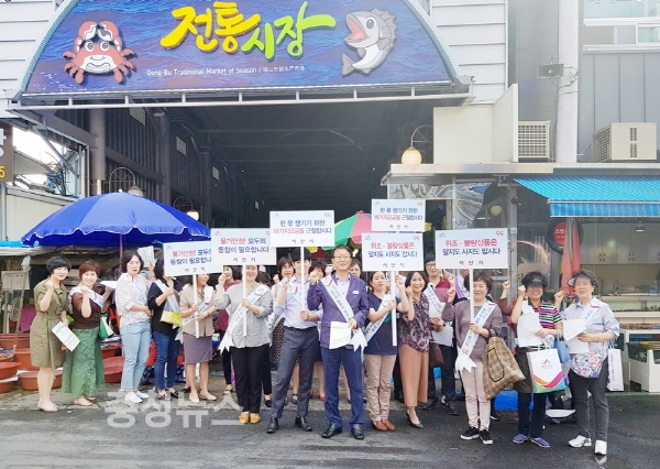 이날 참석자들은 동부시장과 터미널 등을 돌며 현수막, 어깨띠, 피켓 등을 이용해 물가안정에 동참할 것을 홍보하고, 가격표시제를 안내하는 내용이 담긴 전단지를 시민들에게 나눠줬다.