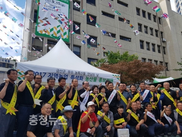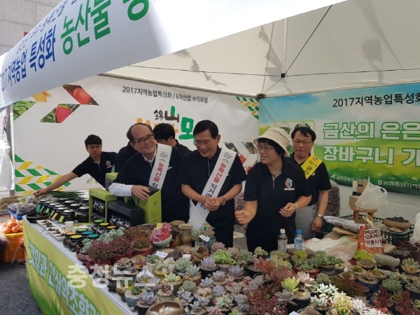 농협 충남지역본부(본부장 유찬형)는 금산군(군수 박동철)와 함께 지난 15일) 충남농협 직거래 금요장터(대전 대사동)에서 지역농산물을 팔아주는 ‘시군의 날’ 행사를 갖고 금산군 ‘비단뫼’ 농·특산물에 대한 홍보· 판촉행사를 펼쳤다.