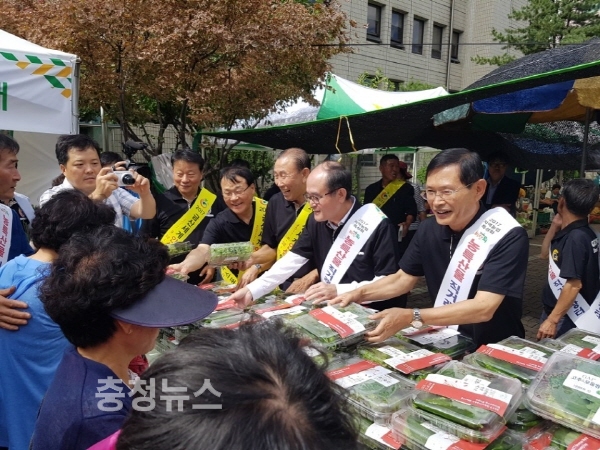 특히, 이날 행사에는 박동철 금산군수, 유찬형 농협 충남지역본부장, 금산관내 농협조합장 등이 함께 홍보·판촉 행사장을 찾아 인삼, 깻잎 등 금산군 비단뫼 농특산물과 2017 금산세계인삼엑스포(운영기간 : 9.22.(화)~10.23.(월) /32일간) 홍보대사 역할에 동참했다.