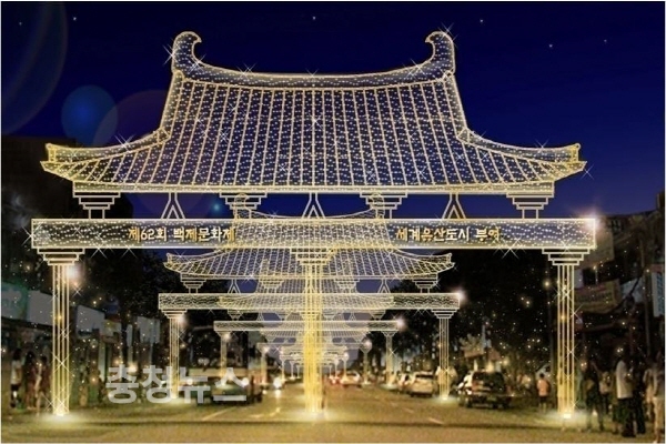 제63회 백제문화제 시가지에 설치되는 경관조명이 빛과 음악으로 한층 임팩트 있는 분위기를 연출한다.