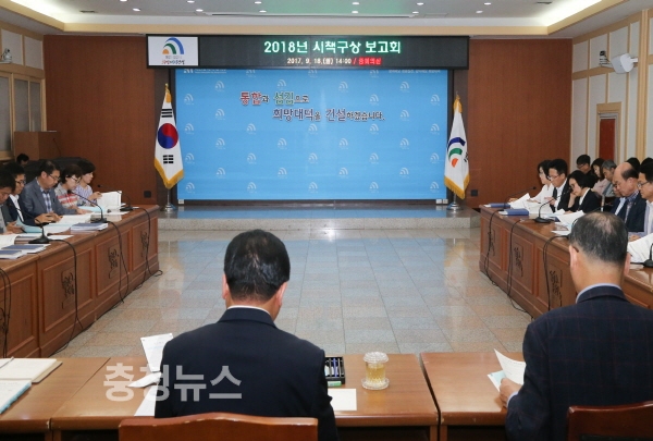 보고회는 2017년 시책 추진사항, 2018년 업무여건 및 정책방향, 2018년 시책구상 보고 및 우수시책 선정 순으로 진행됐으며, 신규 93건, 개선 38건, 일몰 6건 등 총 137건의 시책이 발굴됐다.