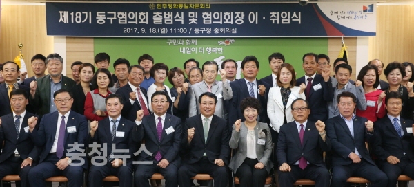 대전 동구(구청장 한현택)는 18일 민주평화통일자문회의 제18기 동구협의회 출범식 및 협의회장 취임식(이희관)과 제17기 협의회장 이임식(남진근)을 가졌다.