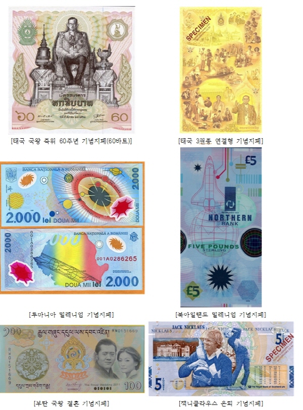 특히 수집가들이 ‘세계에서 가장 아름다운 지폐’로 선정한 ‘북아일랜드 밀레니엄 기념지폐’ 및 ‘루마니아 밀레니엄 기념지폐’는 물론 ‘태국의 3권종 연결형 지폐’ 등 특이형 지폐도 감상할 수 있다