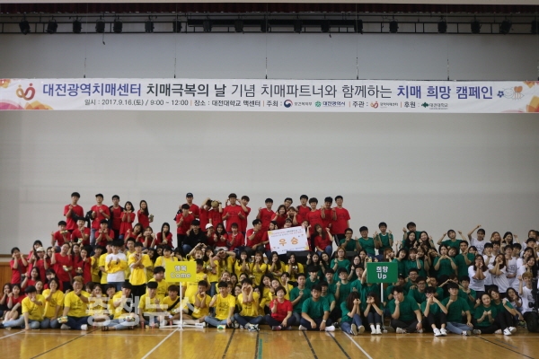 대전광역치매센터(센터장 이애영/충남대병원 위탁운영)는 지난 16일 대전대학교 맥센터에서 치매극복주간을 맞이해 치매파트너 300여 명이 참석한 가운데 ‘2017 치매파트너와 함께하는 치매 희망 캠페인’행사를 개최했다.