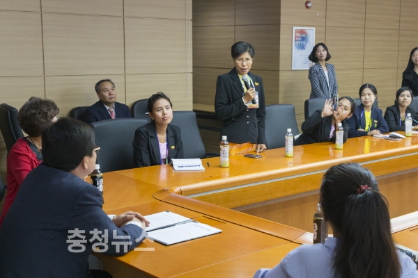 최교진 교육감은 19일 오후 세종시교육청 4층 대회의실에서 미얀마 교사들과의 간담회를 마련하여 “이번에 방문한 미얀마 교원들이 세종시교육청의 축적된 정보화교육 실천사례들을 경험하고, 자국에 귀국 후 미얀마 정보화교육의 선도적인 역할을 해주길 바란다”고 말했다.