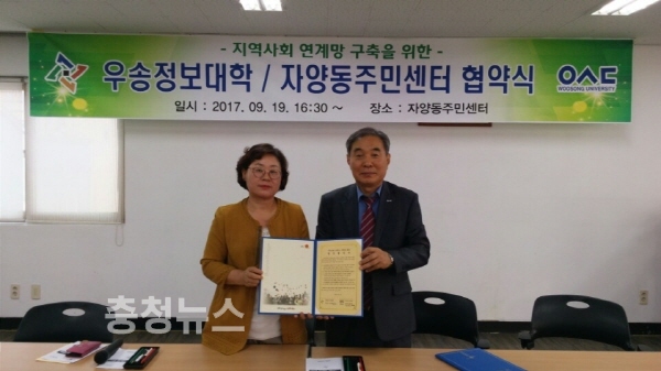 김숙례 자양동장은 “지역사회와의 상생을 위해 노력하는 우송정보대학 정상직 총장님을 비롯한 교수, 학생들께 깊은 감사를 드린다”며 “이번 협약 체결이 자양동에 거주하고 있는 소외계층을 위해 학생들이 자신의 재능을 적극 발휘할 수 있는 계기가 되길 바란다”고 말했다.